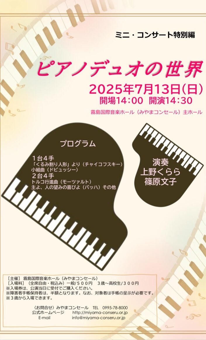 Home お知らせ ミニコンサート特別編 ミニコンサート特別編 2025.06.3 お知らせ ピアニスト上野くららさんと共演します♫ ぜひお越しくださいませ♫お待ちしています。 Tweet Share Hatena Pocket RSS feedly Pin it