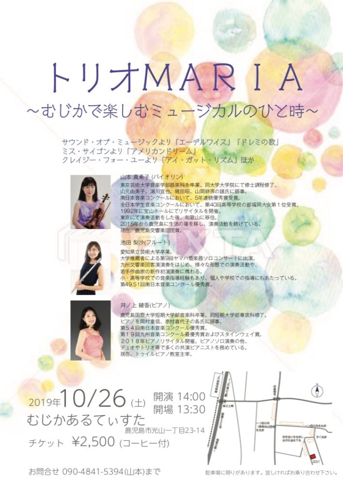 出演 山本真希子(バイオリン)池田梨沙(フルート)井ノ上綾香(ピアノ)